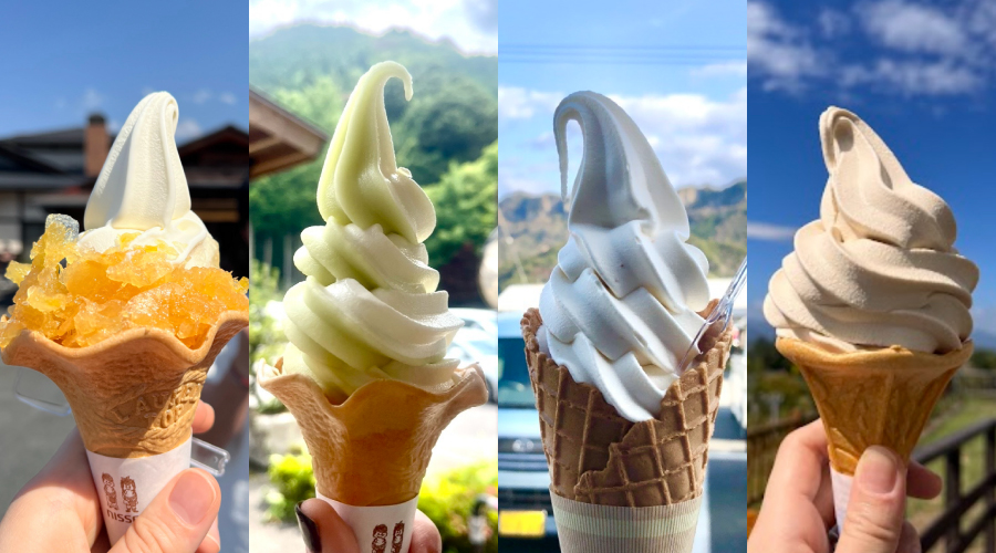その場所でしか味わえない一口は、目の前の風景とともに写真に残したくなります。ソフトクリームに…その味??と少し驚くような味もよく見かけますが、思い切ってチャレンジしてみてください。新たな発見があるかもしれません…!