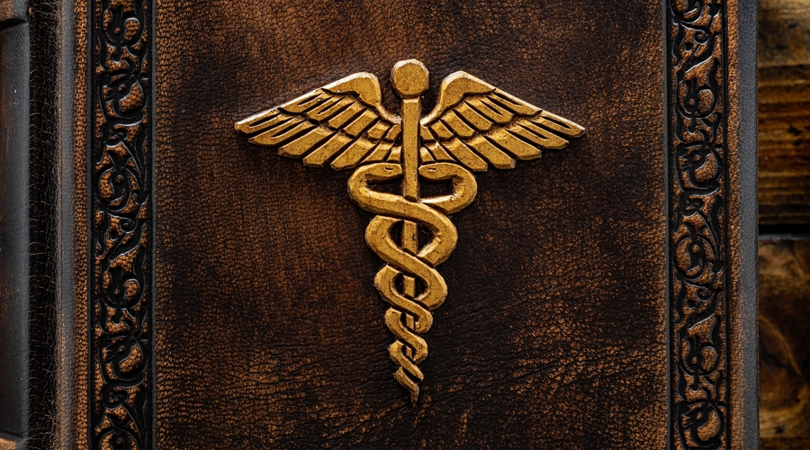 二匹のヘビが杖に美しく巻き付いたこのデザインは、対立するものを調和させる、「平和」や「商業」の象徴とされています。