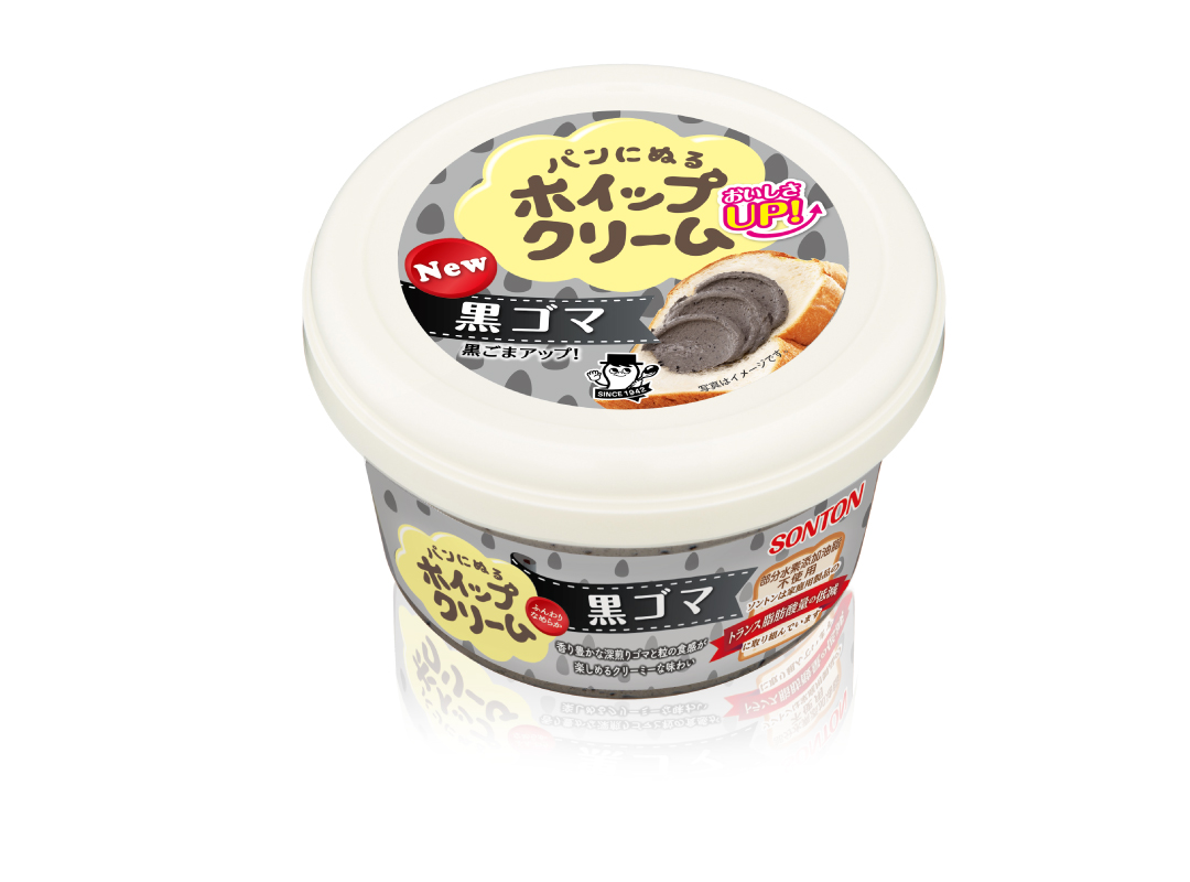 ホイップクリーム 黒ゴマ リニューアル CL/ソントンホールディングス株式会社 2019.09.18 ソントンホールディングス株式会社様のパンにぬるホイップクリームの黒ごま味のリニューアルを制作させていただきました。 以前に比べより濃いごまの風味と食感を味わっていただけるようになりました。 BACK