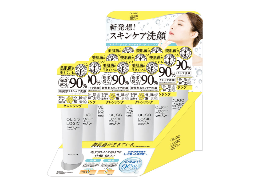 日東電化工業 販促物 CL/日東電化工業 2019.04.24 日東電化工業株式会社様の「オリゴロジック カルチャリングクレンズとローション」のATシールと什器をデザインさせていただきました。ホワイトを基調とし、アクセントでビビットなイエローを配置しました。ボトルのもつシンンプルで誠実な印象に、ポジティブに肌と向き合おうという印象を付加し、店頭で映えるパッケージと什器を目指しました。 BACK