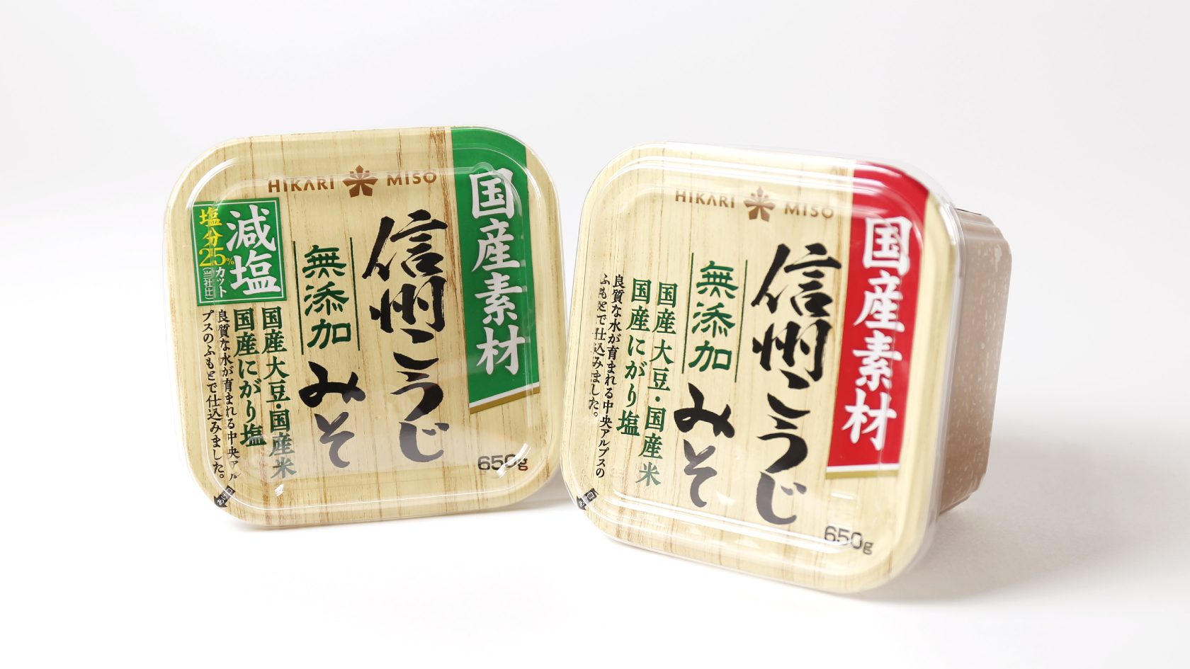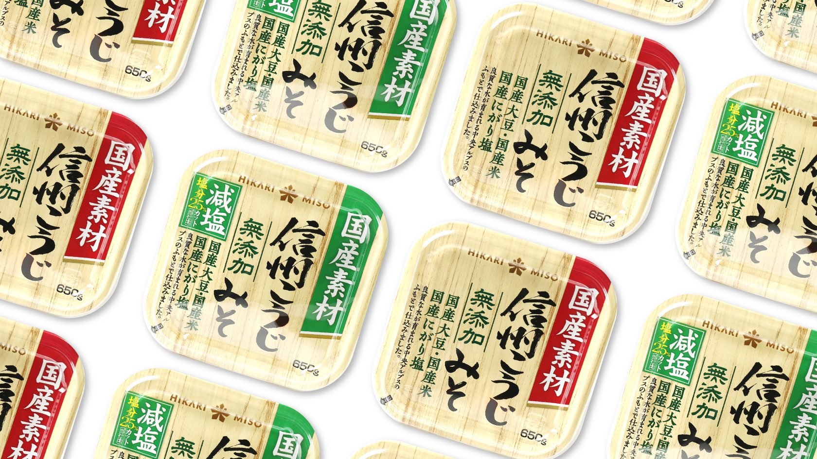 信州こうじみそ AD/末田 貴信 2020.12.04 ひかり味噌株式会社さまより、信州こうじみそのパッケージデザインを制作いたしました。 味噌樽を思わせる木目の背景をベースに、筆文字の商品タイトルで無添加・国産素材のこだわりある世界観に仕上げました。店頭で見かけた際は、ぜひご賞味ください。 BACK