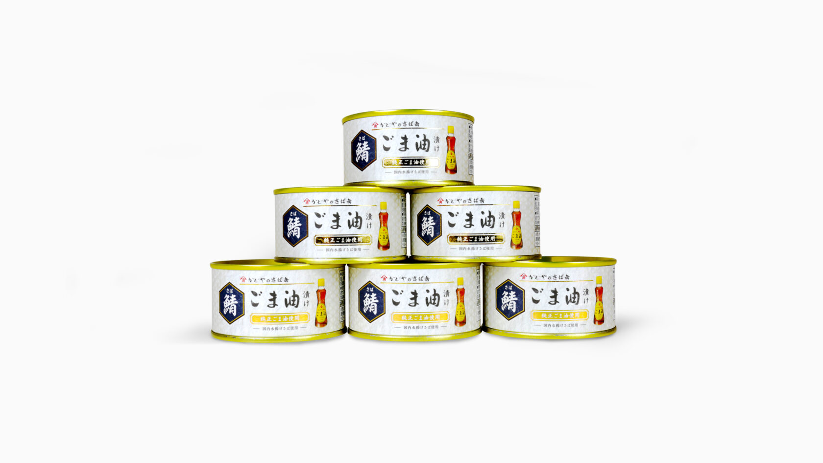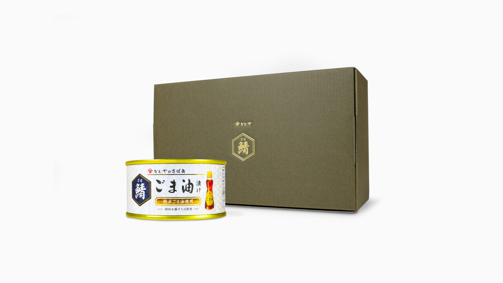 「かどやのさば缶 鯖ごま油漬け」のラベルデザインを制作させて頂きました。