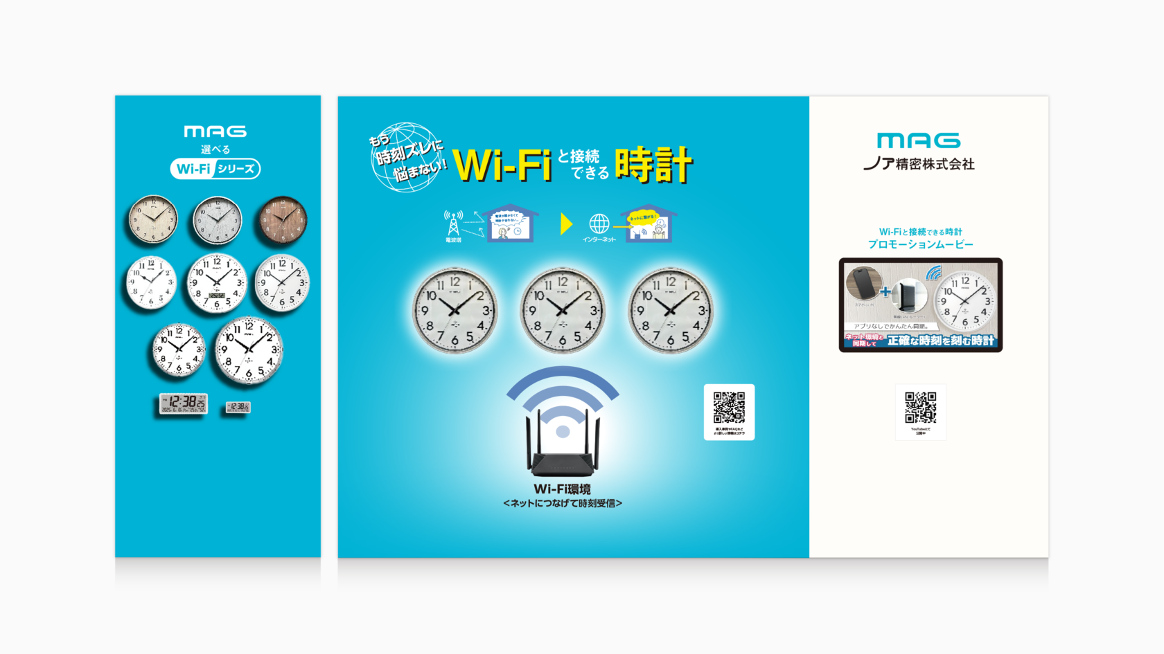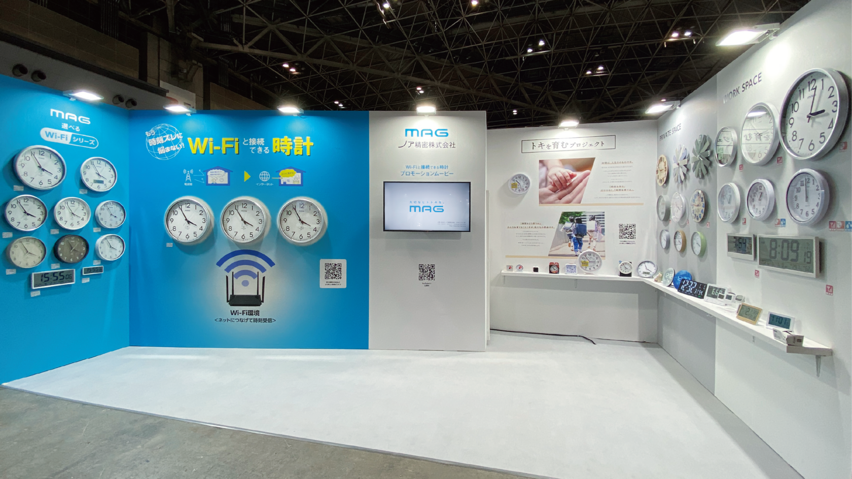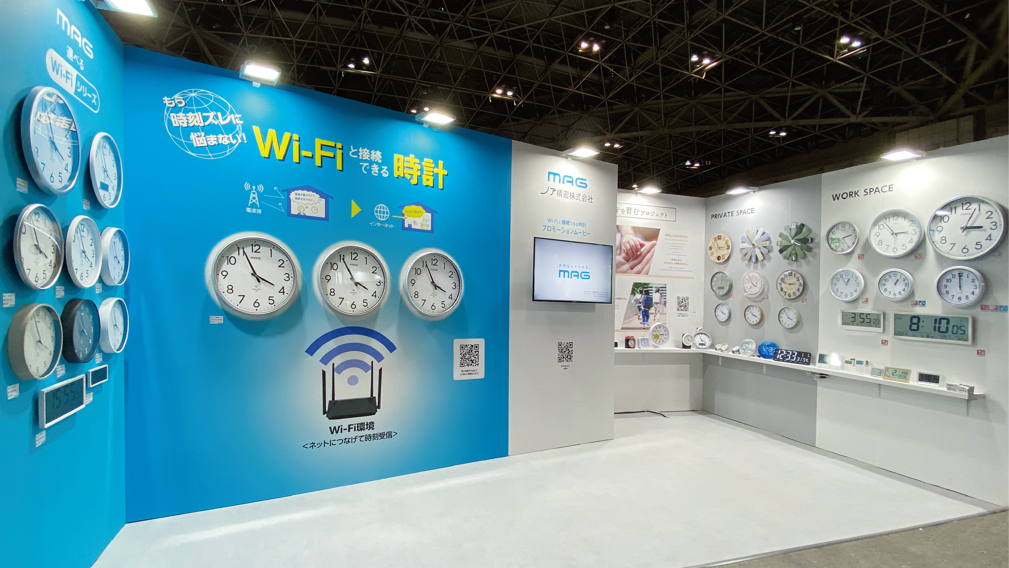 インターネット接続により時刻のズレが生じないWi-Fi時計の展示では、