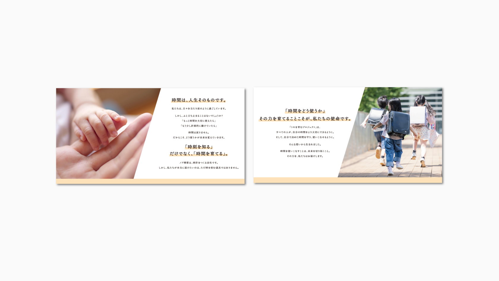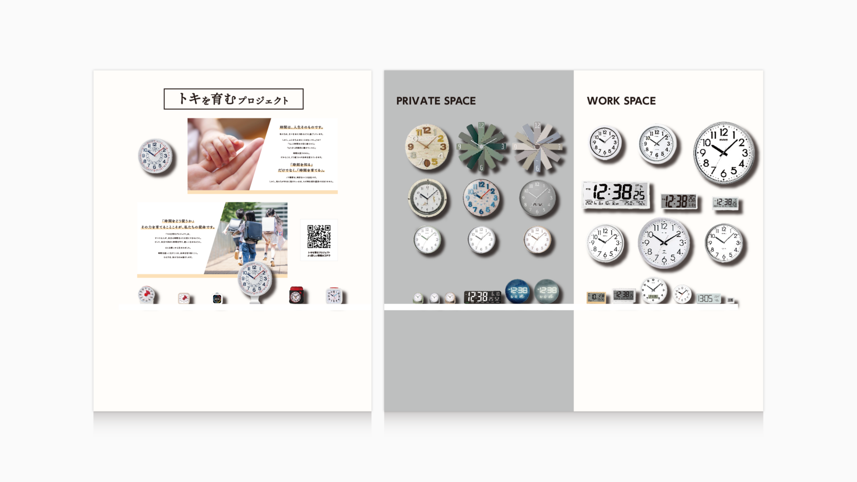 整然と並ぶ時計が引き立つレイアウトに仕上げています。