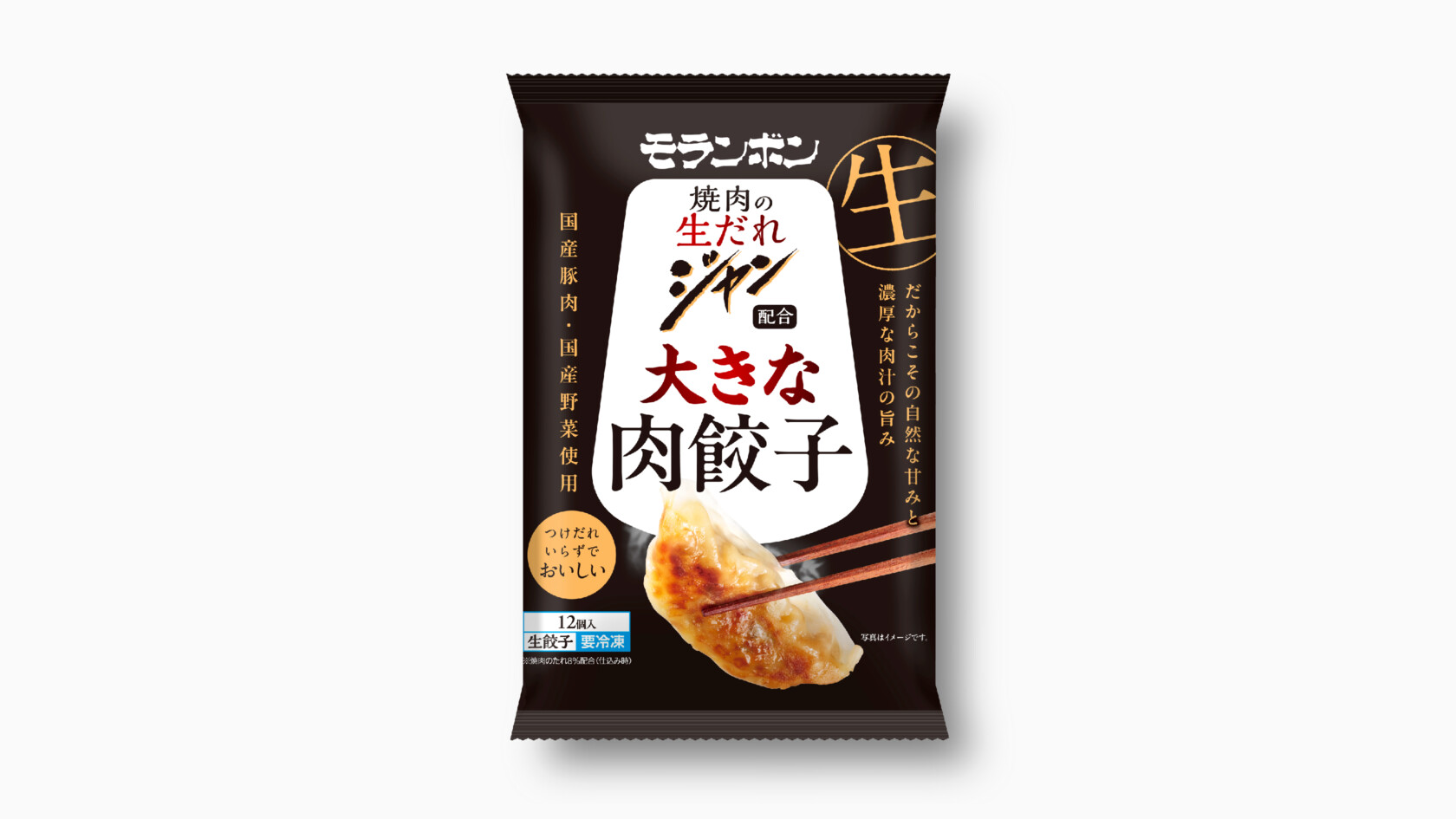 国産豚肉・国産野菜を使用した“生餃子”であることがしっかりと伝わるようにしました。