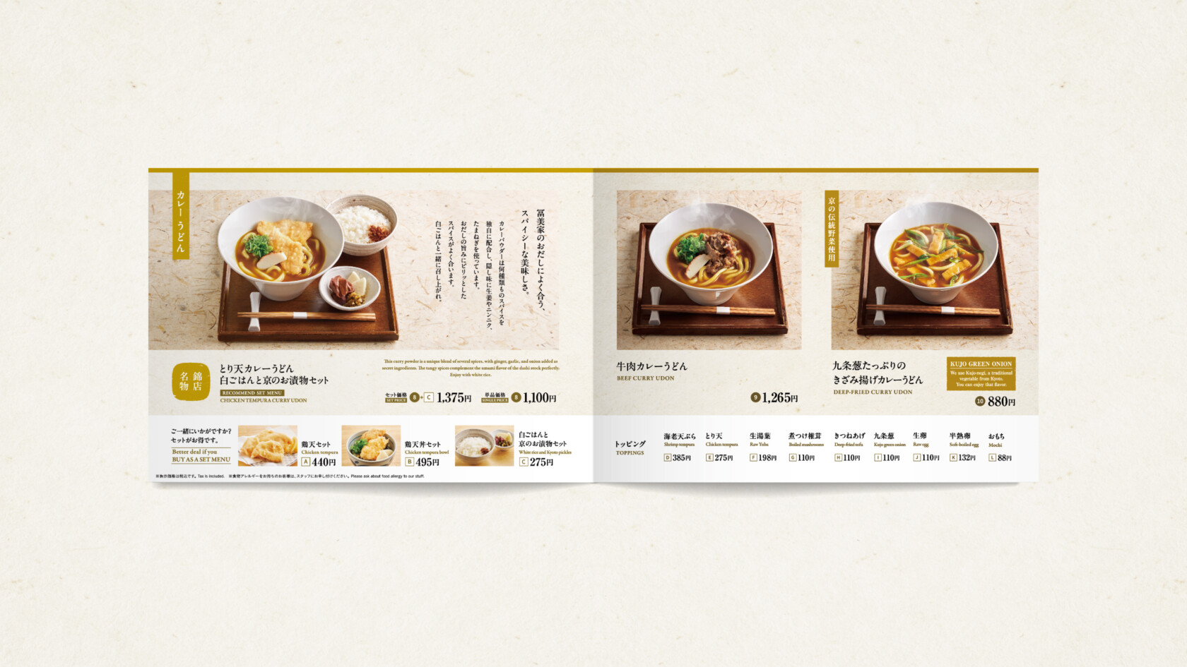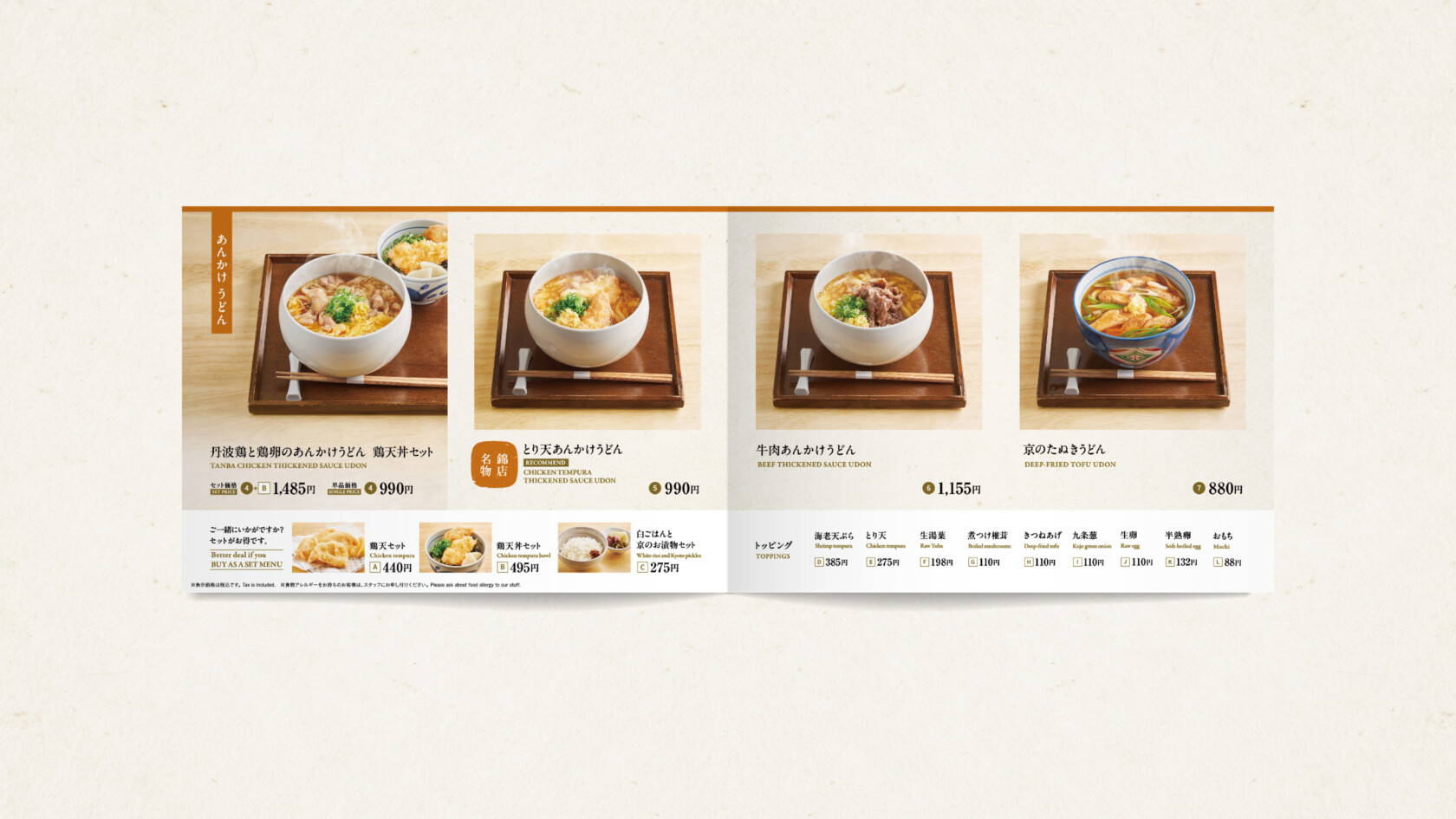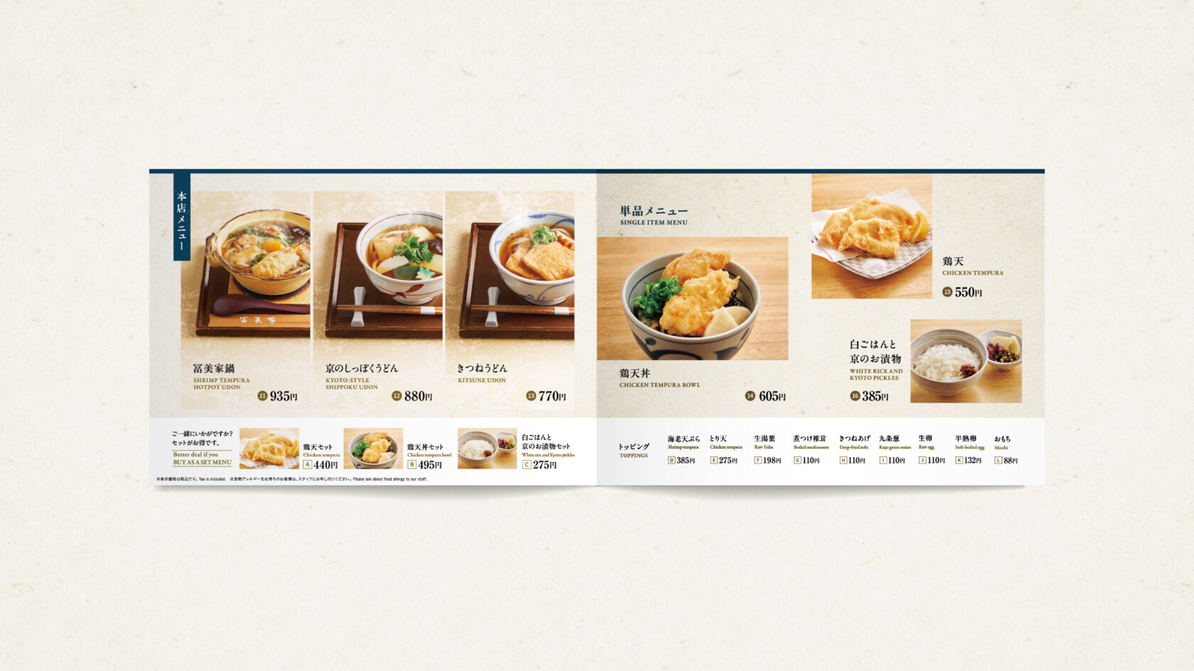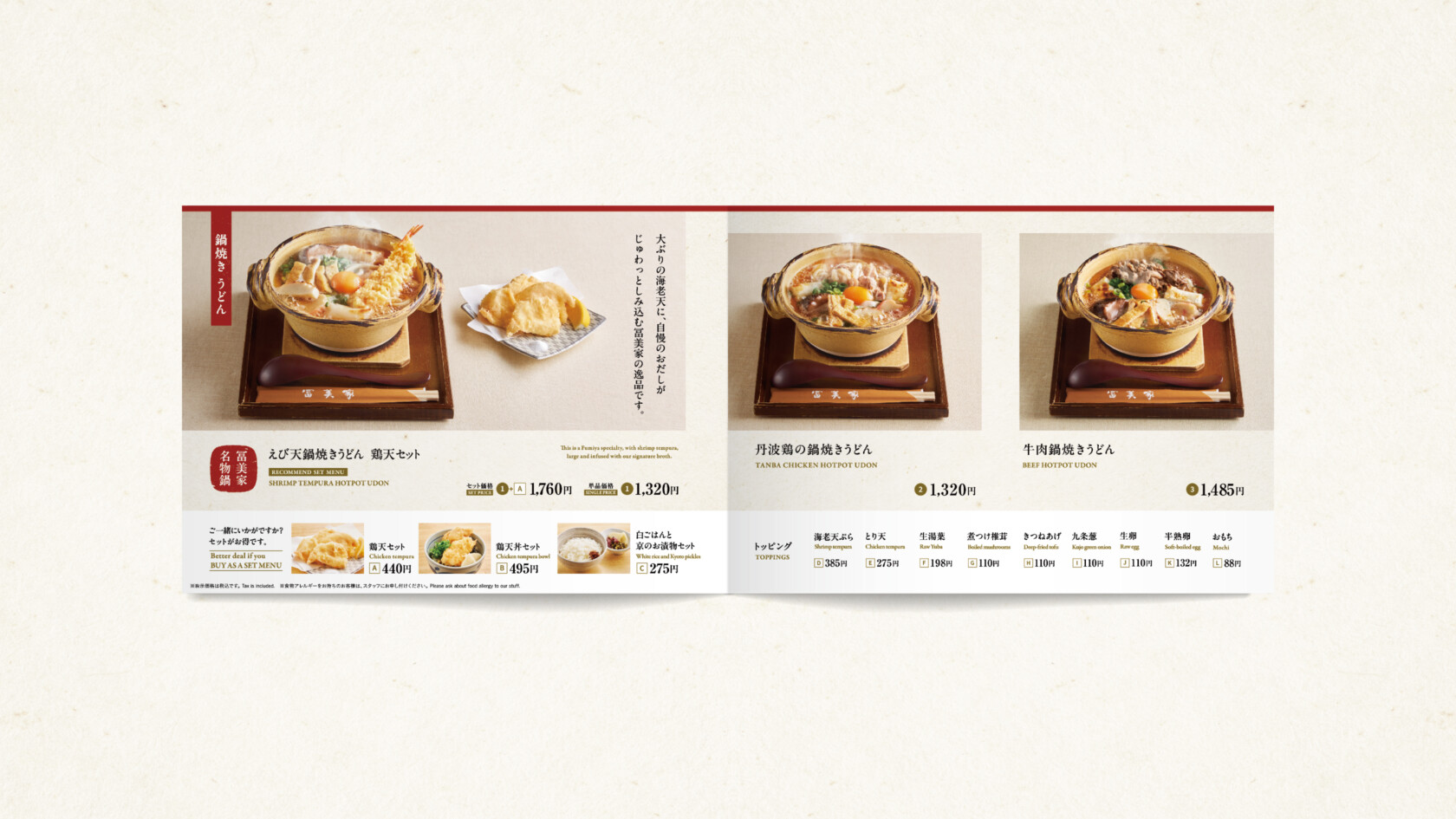 京都の老舗うどん屋「うどんの冨美家」のメニューを制作いたしました。