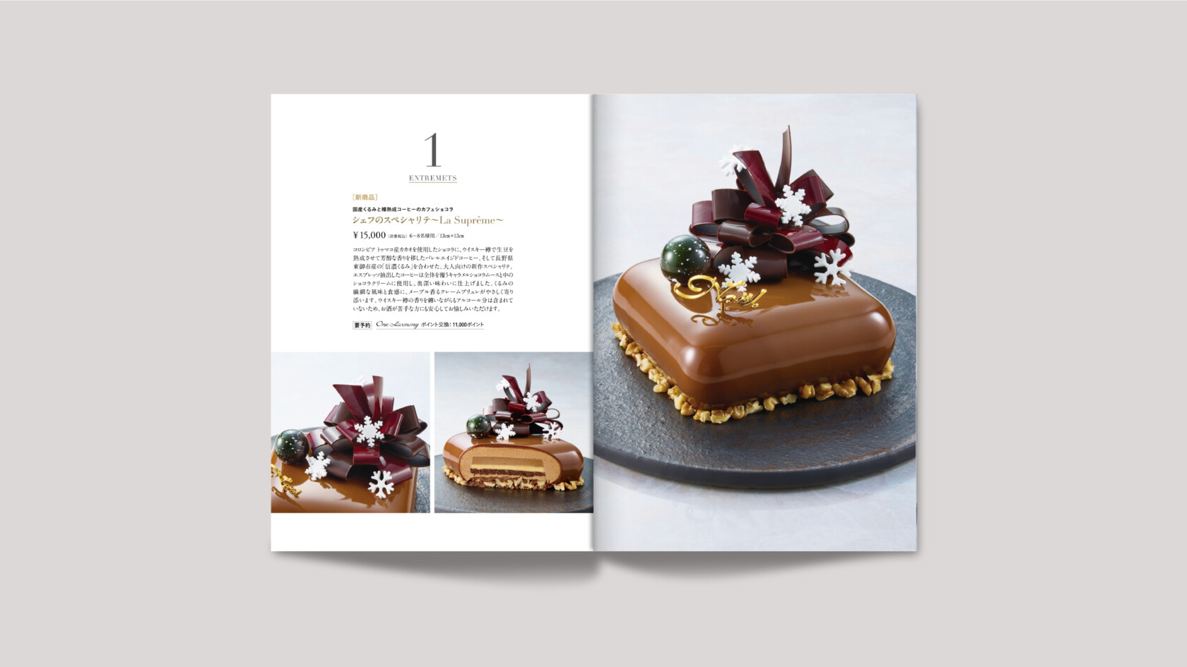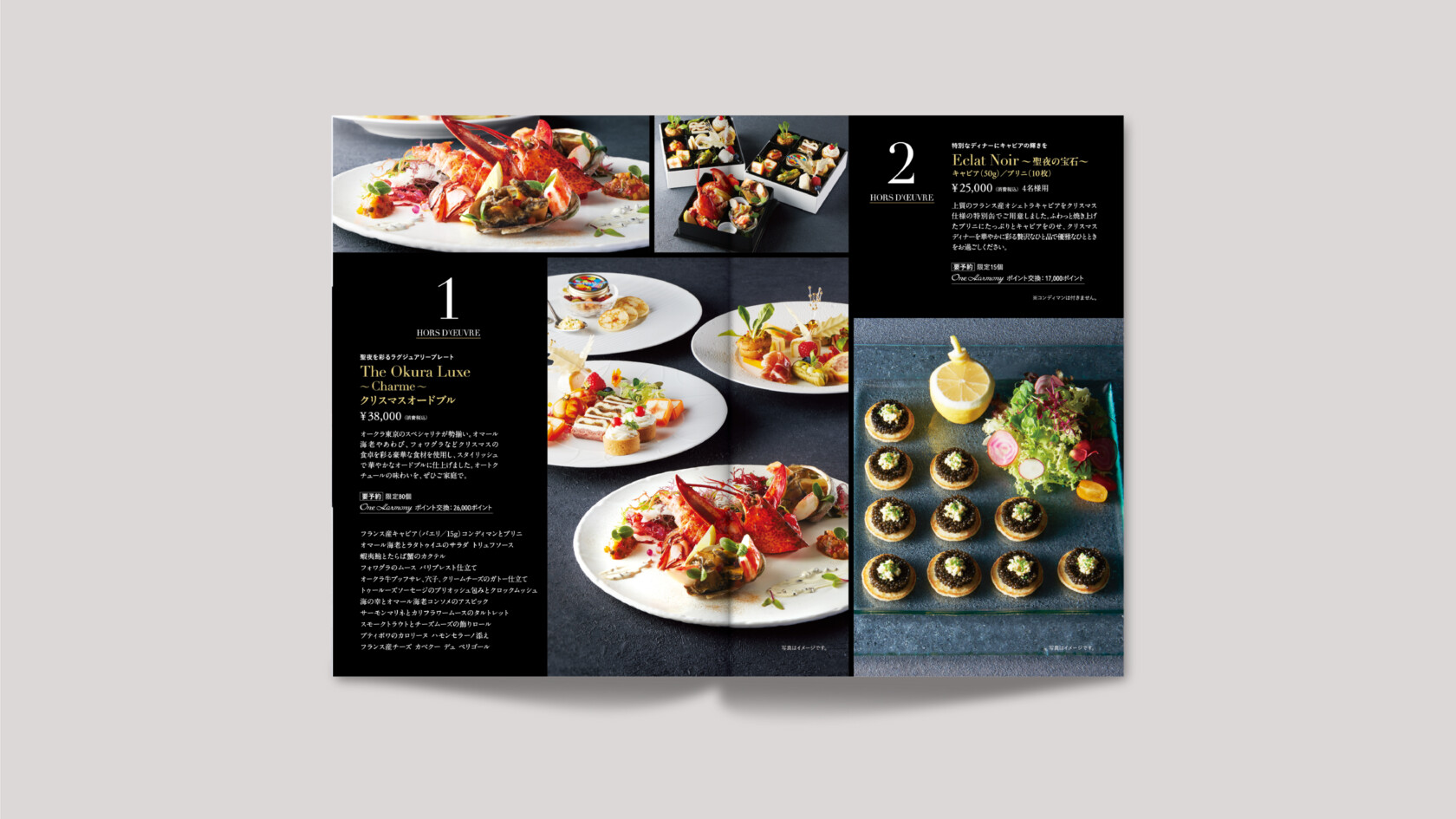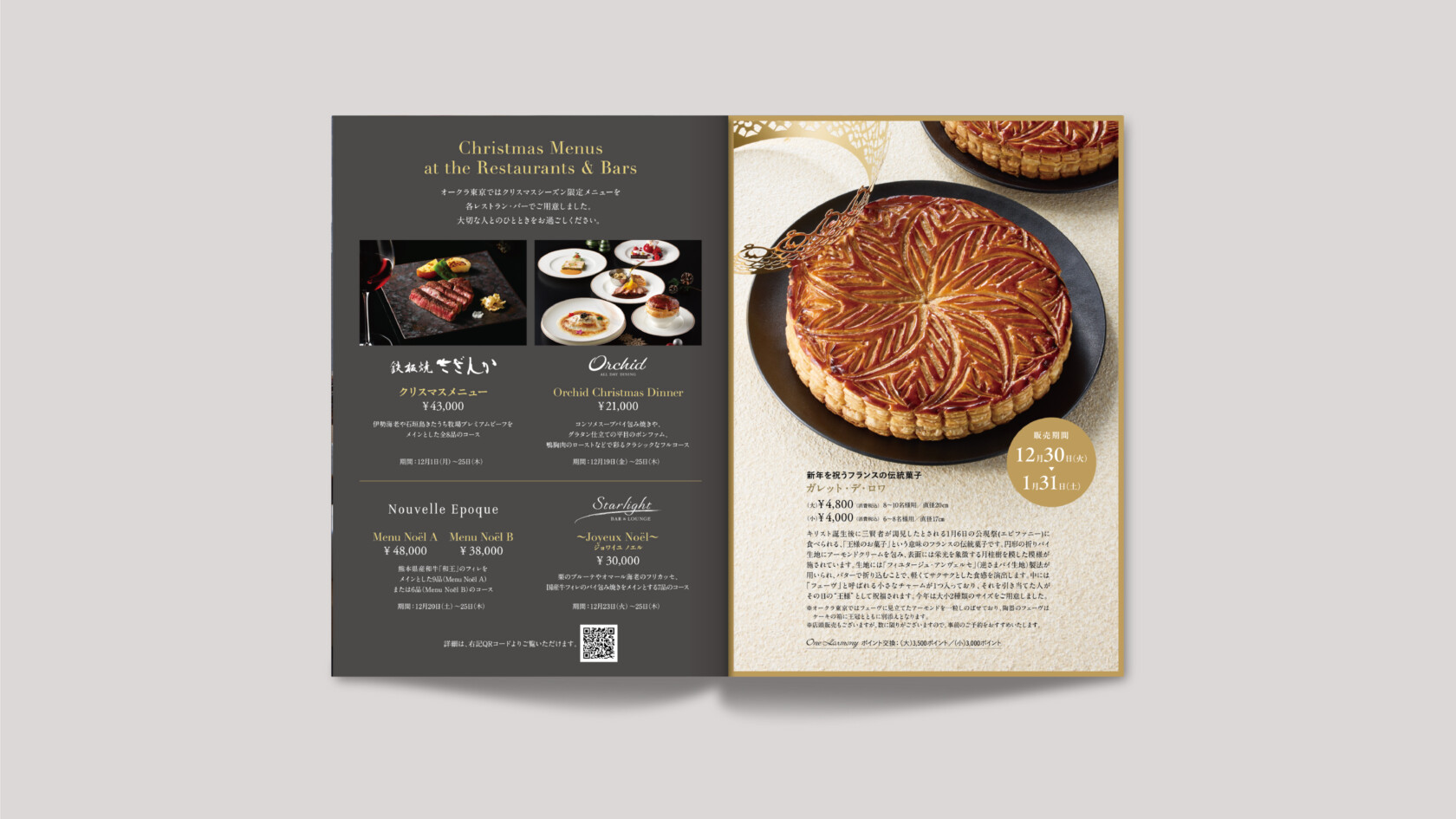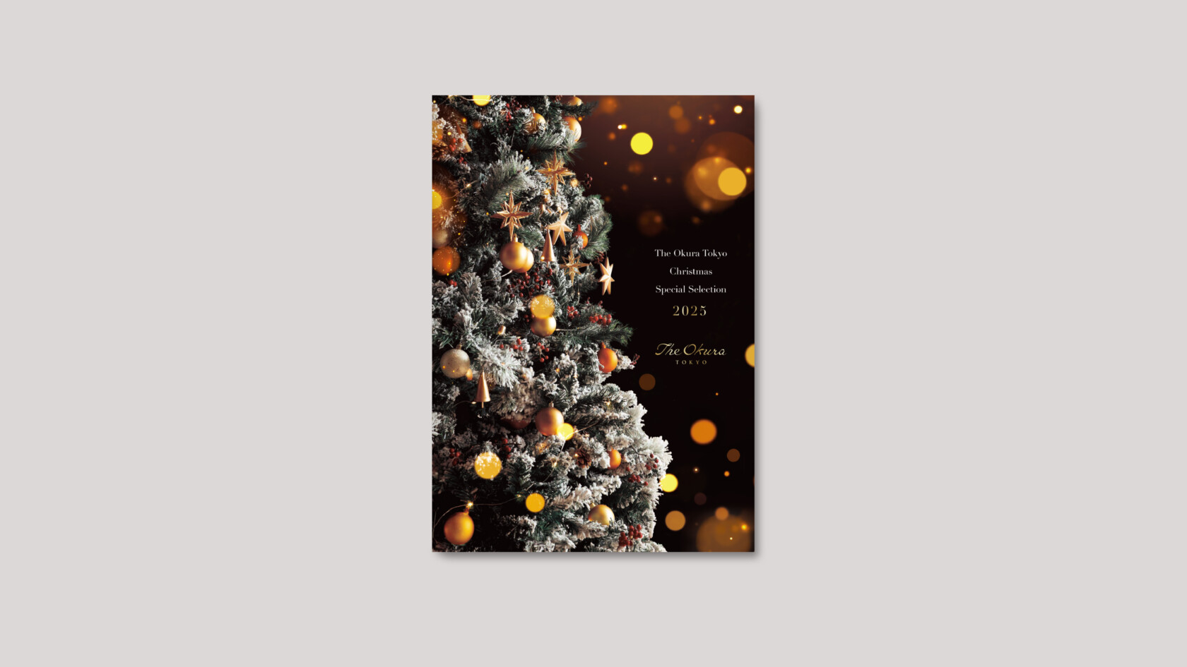 黒を基調とした表紙で、The Okura Tokyo 様のクリスマスツリーを象徴的に配置し、